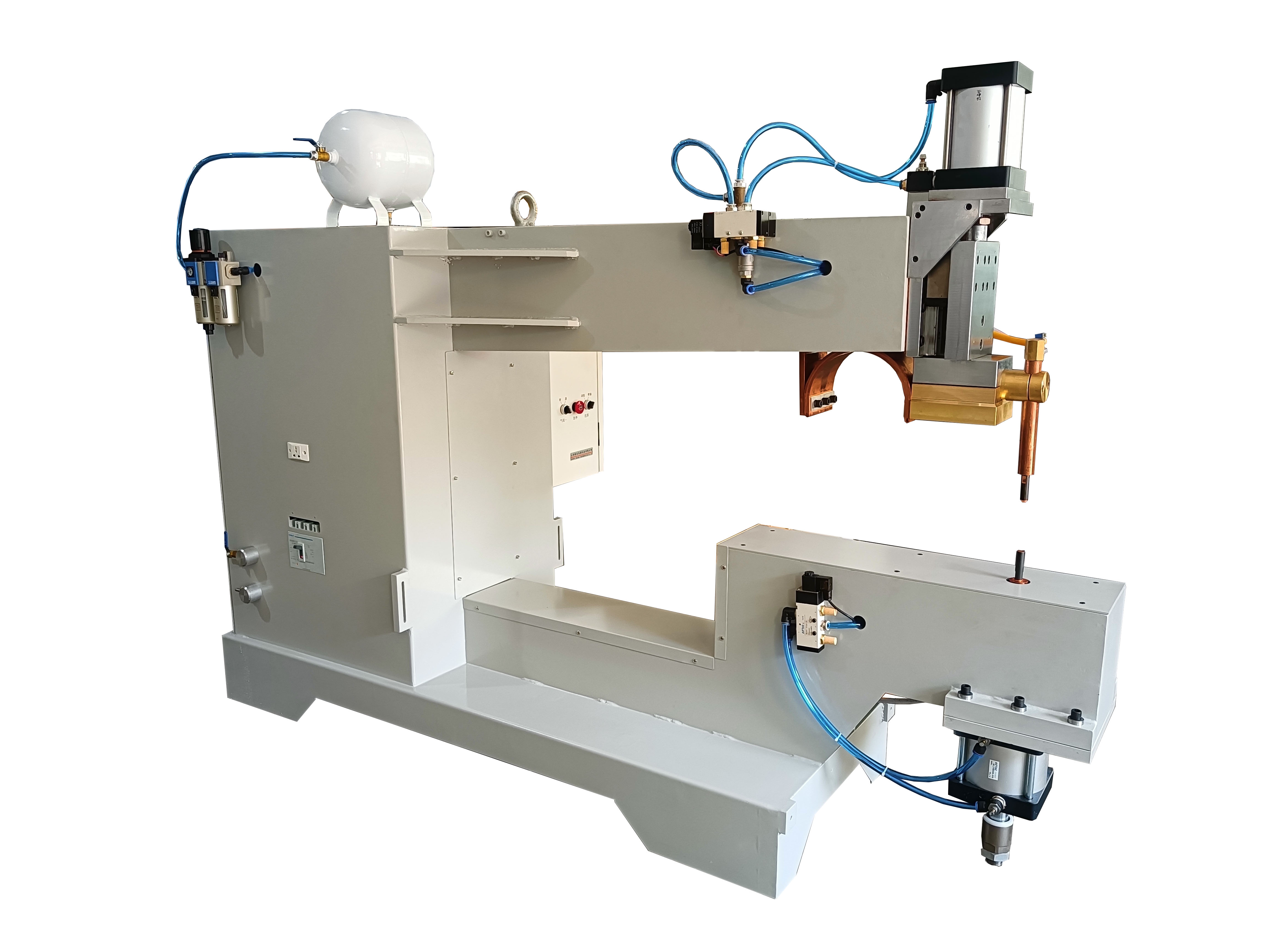 縫焊機就是指焊件裝配成搭接或?qū)咏宇^并放置于兩滾輪電極中間,滾輪電極加壓焊件并旋轉(zhuǎn),連續(xù)或斷續(xù)脈沖送電,形成一條連續(xù)焊縫的電阻焊機器。可以說,縫焊機是點焊中的一種演變。
